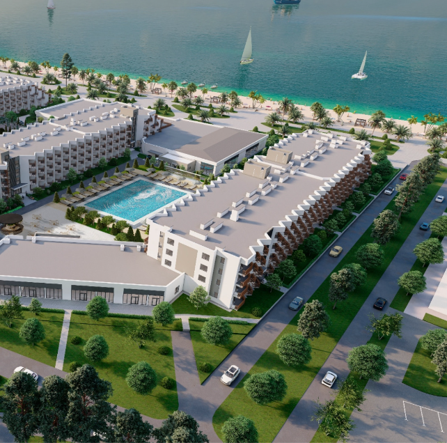 Новый жилой комплекс «Лазурный», состоящий из четырех четырнадцатиэтажных секций, расположен в 1800 метрах от берега Черного моря — в городе-курорте Анапа.